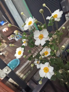 一株だけもらって植えたはずが、気が付けば お隣との境辺りで大繁殖しているシュウメイギク。 どこかから胞子が飛んできてこれまた大繁殖してる シノブと共にわさわさになってます。 そろそろ適当に引っこ抜かないと、新月サンの顔が ヒクヒクしてきた気がする・・・