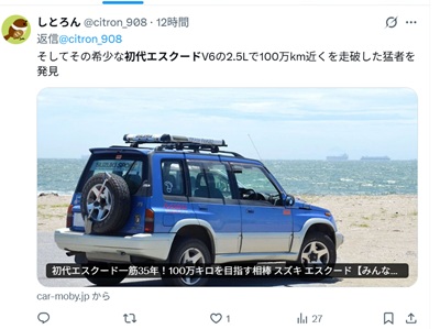 でも間違ってます。事例にあげられている初代と二代目のエスクード。どちらもJ20Aを積んだ直四の2000です。何度か「乗ってみ?」と勧めたことはありますが、WESTWINのドライバーたちは一度もV6のエスクードは扱いませんでした。立ち上がり重視のコーナーワークが連続するコースですから、フロントヘビーであることはともかく、瞬発力においてはV6よりも直四の方が有利ですし。