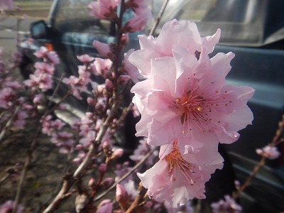 町なかをぐるりと巡っても、満開になるのは四月に入ってからという様子で、里で元気のよい桜はこの路傍の一本だけでした。だいぶ前に倒れ掛かって、そのまま樹勢は回復したものの、年々道路側に張り出してきているため、伐採されないか心配ではあります。春の彼岸は月曜日に開けており、「彼岸すぎたら僕の部屋も暖かくなる」などと、クラフトの歌をかけようと思ったけれど、持っているのはCDなので、カセットデッキしかついていないぷらすBLUEでは自分で鼻歌するしかありません。