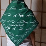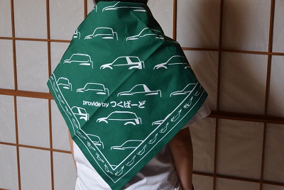 ついに完成した大風呂敷の実物。乗ってくださった皆さん、立案と制作に携わってくださったコムロさんご夫妻に感謝です。デザインはバンダナと共通なので、エスクードのアニバーサリー25となっていますが、遊びなのでESCLEVではなくつくばーどになっています。ここを変えておいたおかげで、つくばーどの30周年の記念にこじつけることができます。