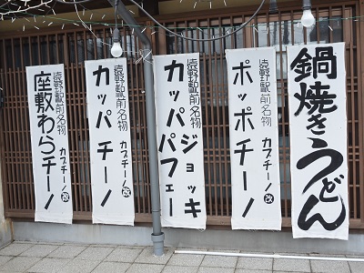ジョッキパフェというのは、たぶん我々みたいなおっさんには手に負えない体に悪いやつなんだろうなあ(あとで写真を見て、手を出してはならんと確信)。しかしそのわりには鍋焼きうどんだけそのまんま直球勝負しています。この肌寒さなら鍋焼きかなと店内に入ろうとした