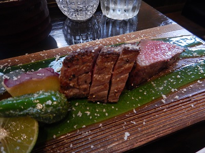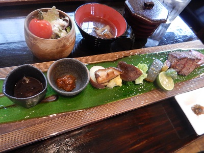 入ってみたら、以前来たときと比べていくらか内装と調度品が変わっていました。喫茶店系のメニューは当然無しで、数種類のランチのみ。昼営業終了間際で、あわやラストオーダーを逃すところでした。遠野ではちょっと高めかもしれないけれど、直感では「あれ? 意外に安めだよ」と感じたスペシャルランチ1500円税込みを頼んだら、短角牛のステーキが地元産の温野菜とともに出てきました。サラダ、舞茸のスープ、ご飯と飲み物付き。これは見っけもんでした。