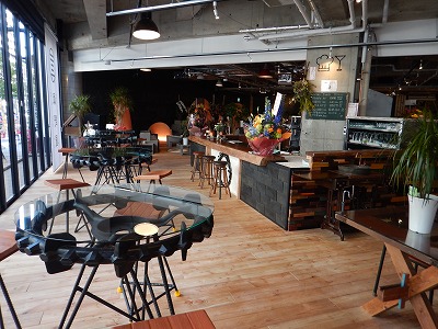 しかしながら真野社長のことだから凝りすぎるんじゃねーか? と心配していたのです。案の定、商品のディスプレイはJACの真骨頂で、あらゆるものが廃材の再利用。解体された高等学校の教室から提供された机や椅子に、ロッカー、傘立て。カフェのテーブルなんか、トラクターのスチールホイールでしたよ。ところがそういう目を引きそうなディスプレイながら、商品を埋もれさせていないところに、ここ数年間レストランや雑貨ショップで研究してきた成果を見せていました。