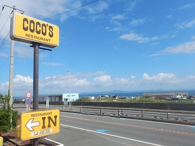 それはほうれん草とベーコンのバターソテーと、サーモンときのこのクリームパスタにランチドリンクバーとスープ付きという献立。津久井浜のココスは、つくばーど基地からおおむね160kmの道のりなので、100マイルランチです。