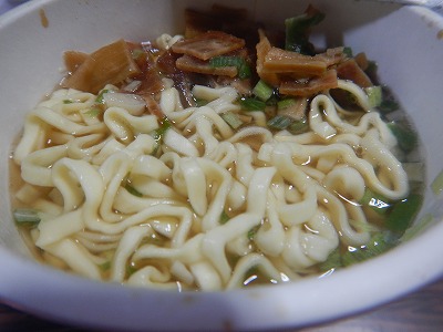 熱湯注いで5分。相当にもちもち感の強い麺なのだと思われる茹で時間。謎肉ならぬ謎叉焼の味わいは、坂内の濃厚叉焼と比べちゃなるまいと納得して、箸を付けます。これは稲庭うどんか?(行ったことないから四国のうどんを食ったことないのよ)という腰の強さともちもちな麺。つゆの方は案の定、近所の坂内よりも濃い口です。でも割といけるので、後日買い足しに出かけたら売り切りもので売り切られておりました。もう少し買っとけばよかった・・・