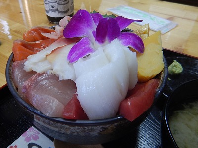 アジフライはぱりぱりふわふわで、内房の名所に引けを取らない立派なひらき。その下敷きとなっているレタスやキャベツのサラダ類が大波レベル。それを覆い隠すフライと共に、僕の胃袋にはこれは多いぞというご飯盛りで、最強クラスの定食ながら北里さん一人というありがたい値段(海鮮丼は平日限定5食版で1800円 なぜかスタンダードは2500円)。女将さんに伺ったら息子さんがシャチ好きでジェットスキーのクラブ名でもあるとか。シャチ談義の昼飯でした。