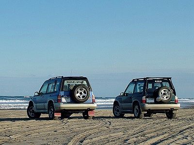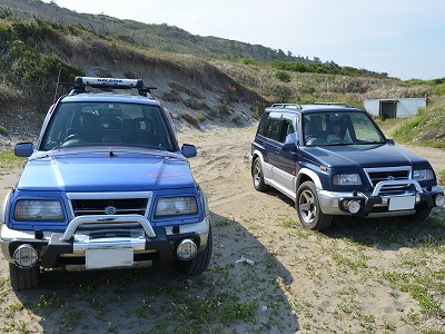 この場所はつくばーど®の「Sレイド」をスタートさせたところでもあり、仕掛けた方がびっくりさせられるほどたくさんの挑戦者が訪ねてくれた海岸です。このTA11Wもその1台で、前夜から走り通して青森県からやってきたエスクードでした。
