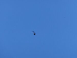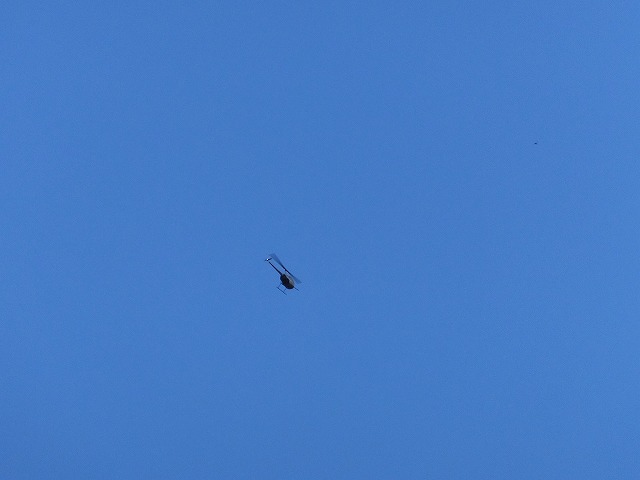 上空でバラバラとヘリの音がしたので コンデジのズームで撮ってみました。 最初からズームしちゃうと機体見失うし 機体とらまえながらズームするのも これまたムズイ・・・