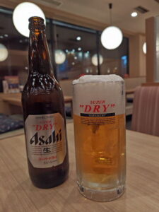 飲兵衛な我が家の救世主、近所のファミレスの飲み放題。 ここがASAHIだけしか扱ってないので件の騒動で当然の様に休止・・・ 放題はしてないけど、普通のメニューでは提供してるので、 久しぶりに大ジョッキ♪(飲み放題の生ビールは中ジョッキのみ) 大ジョッキと大瓶はほぼ同じ値段ですがどっちがお得かしらねぇ。