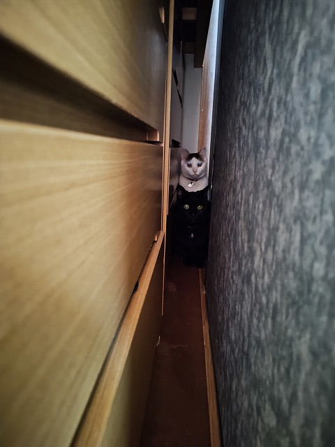 余所の人が来た瞬間姿を消す猫ず・・・まあ、普通の反応なんだけどさ。 もう少し愛想良くてもよくない?? 緊急事態は猫ずじゃなくて夏に工事した二重サッシなんだけどね。 ガタつく箇所が何個か出てきたので調整してもらいました。 そしてクレセントの引っ掛かりだけかと思ってた寝室が 実は一番酷く歪んでいたというオチ・・・ スペーサー噛ませてレールを上げてようやく左右の隙間が無くなりました。 が、スペーサー噛ませた分浮いたレールに隙間が(笑) 後日コーキングで塞いでもらいます。