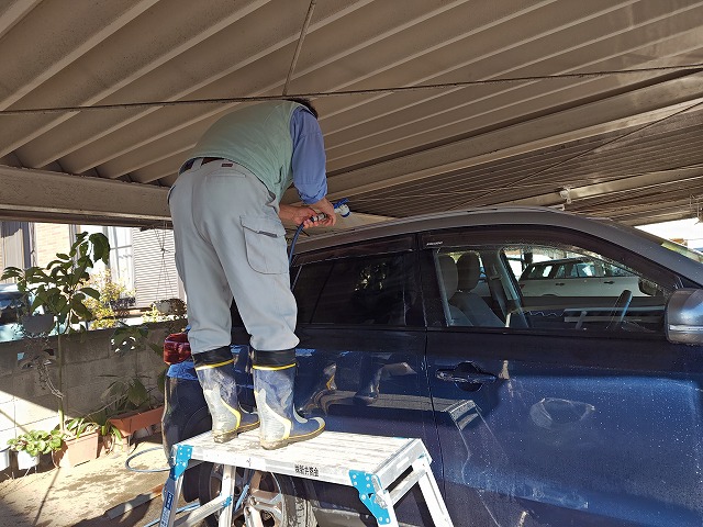 あおちゃん&さくちゃん洗車(ただし水洗いのみ) 新月サンが遠距離走ってくっつけてきた虫の死骸やら 三ヶ月分のホコリやら黄砂やら・・・ カピっと貼り付いてなかなか手強かったようです。