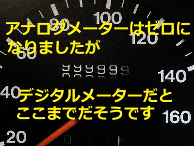 という回答でした。まあ軽自動車から小型車普通自動車全般、そこまで走らせようなんて酔狂な人はそうそういないでしょうから、計器の設計上そうなっても大きな問題にはならないと思いますし、むしろゼロに戻ってしまうと「何これこの年式で全然走っていないし」と勘違いされてしまうことの方が良くないのでしょう。