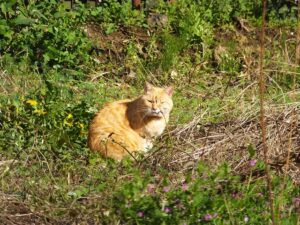 たまに見かける茶トラ・・・ おとこのこかなー?おんなのこかなー? まったりしてるトコロにカメラ構えたら 途端に身が固まった感じ。 ・・・邪魔してごめんよっ!